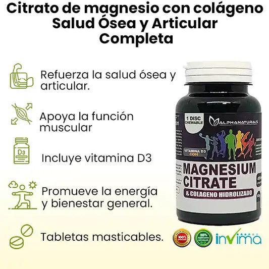 Citrato de magnesio con Colágeno Hidrolizado y Vitamina D3 x 60 Alphanatural's