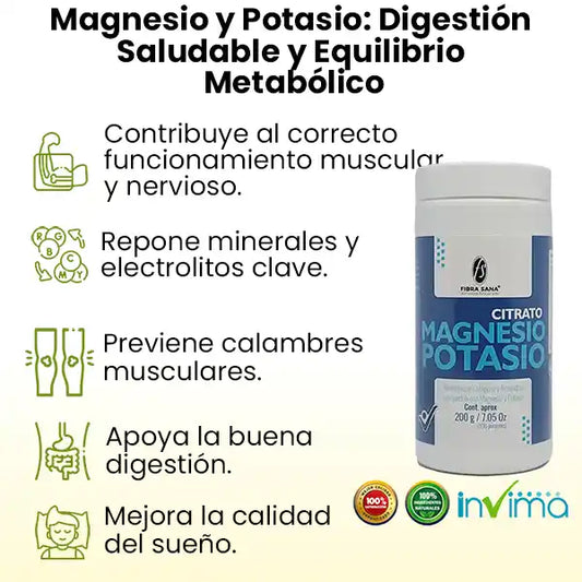 Citratos Magnesio y Potasio x 200 g - Fibra sana